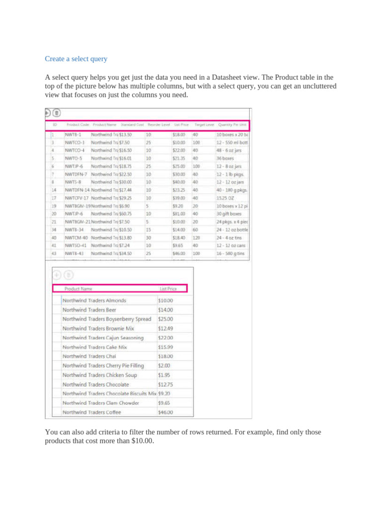 Create a select query | PDF | Table (Database) | Databases