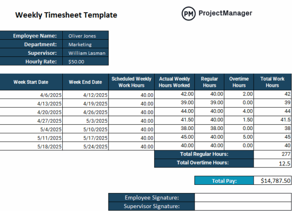 9 Free Timesheet Templates for Excel, Google Sheets & Word - ProjectManager