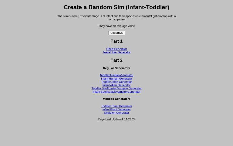 Create a Random Sim (Infant-Toddler) ― Perchance Generator