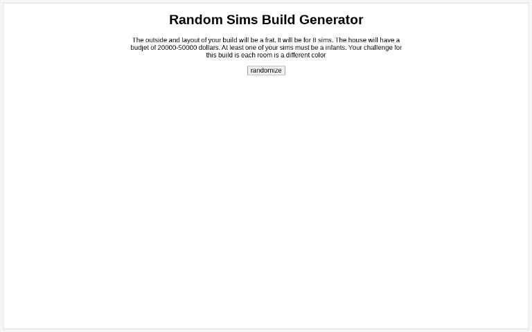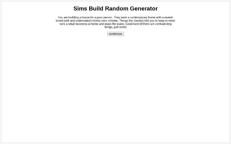 Sims Build Random Generator
