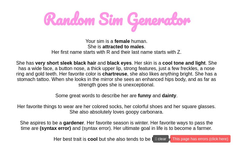 I made a Random Sim Generator for when you need inspiration or a ...