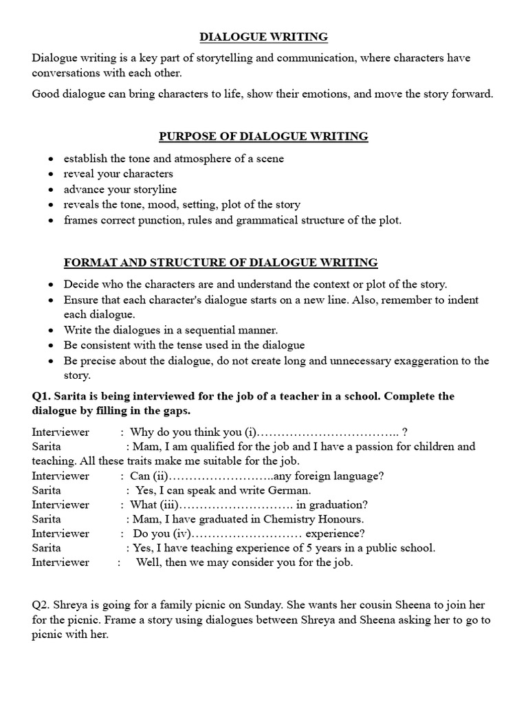 Writing Dialogue Practice at Virginia Lyman blog