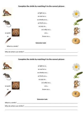 Complete the Simile Activity Sheet
