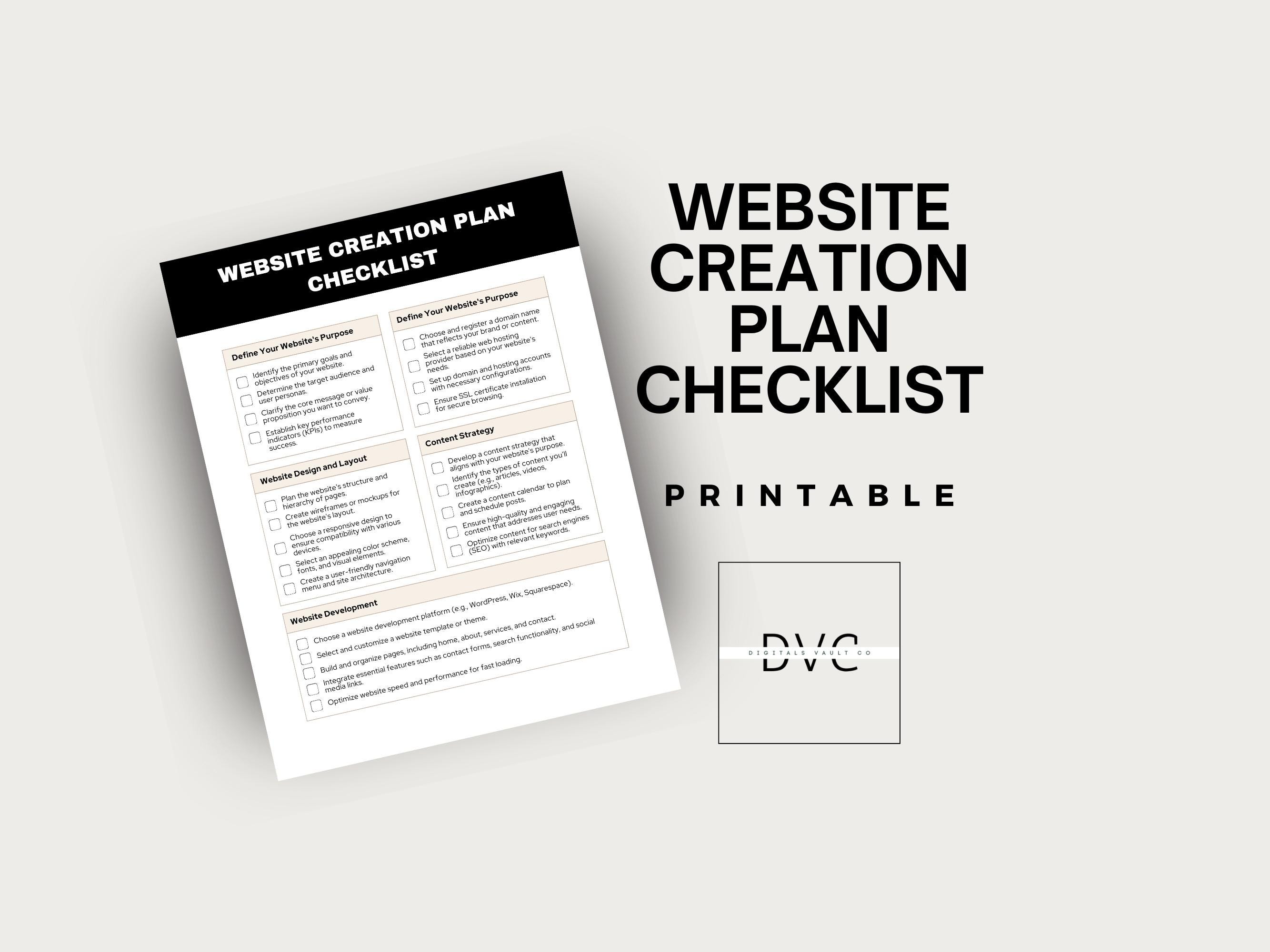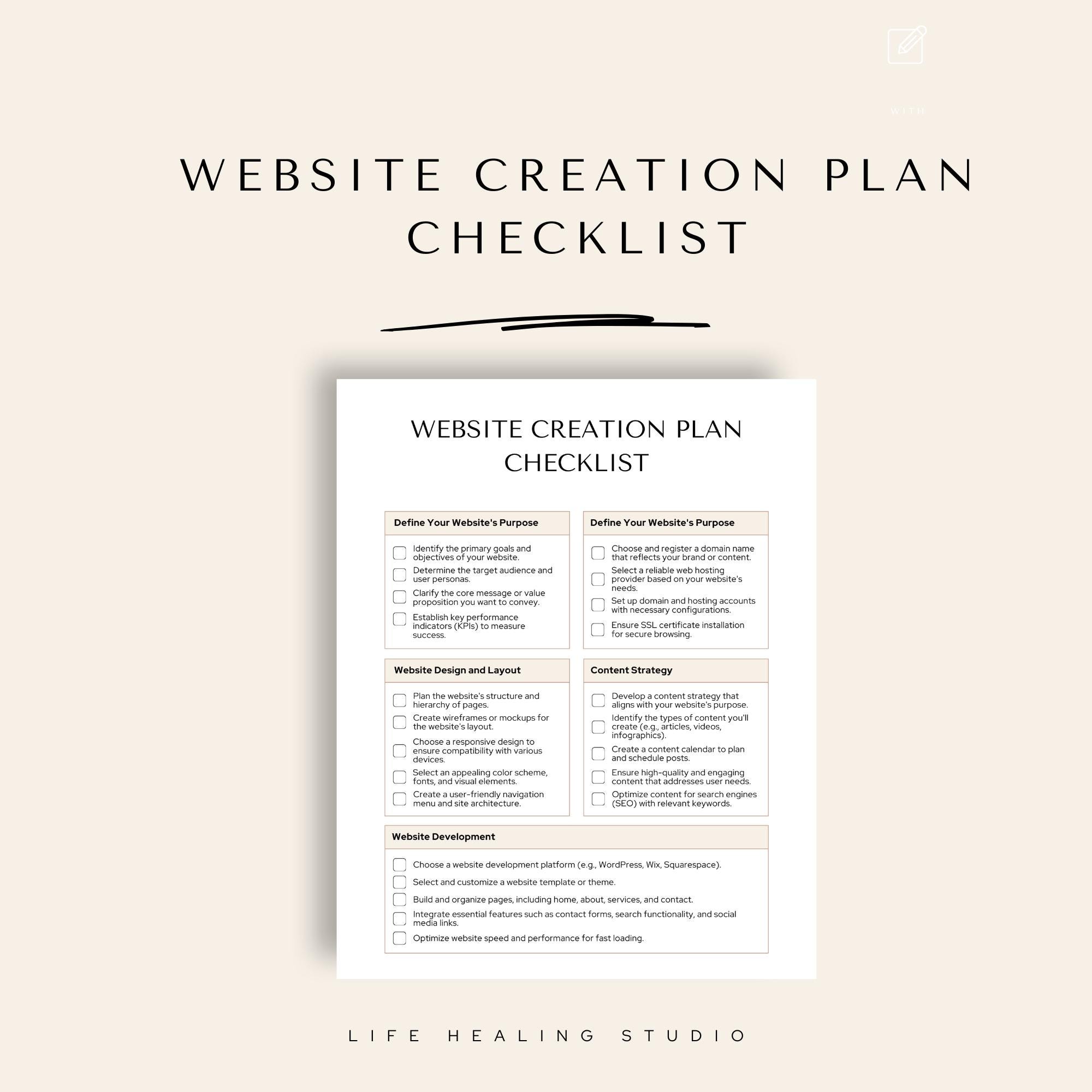 Website Creation Plan Checklist Printable PDF | Web Design, Building ...