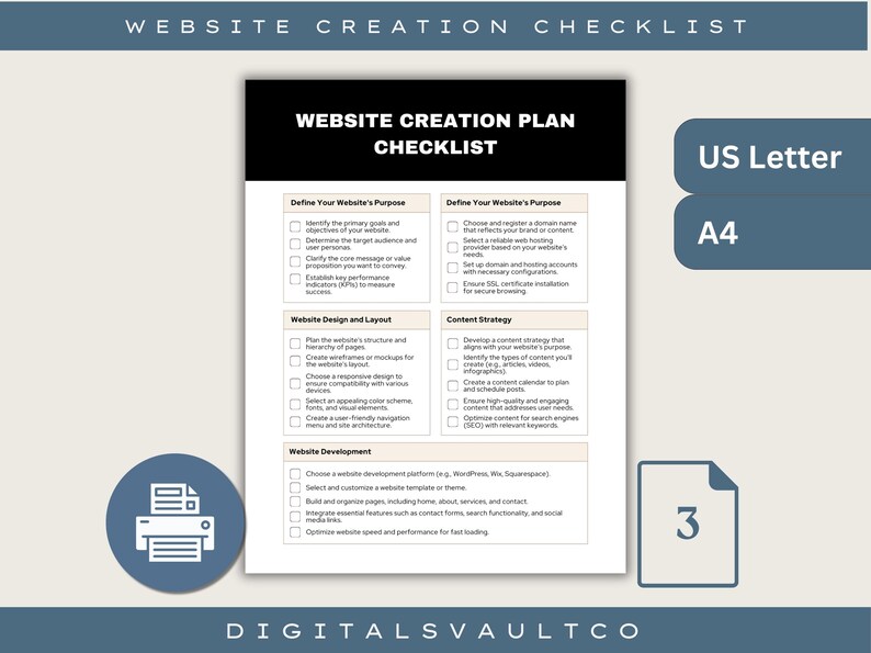 Website Creation Checklist PDF Printable for Beginners and ...