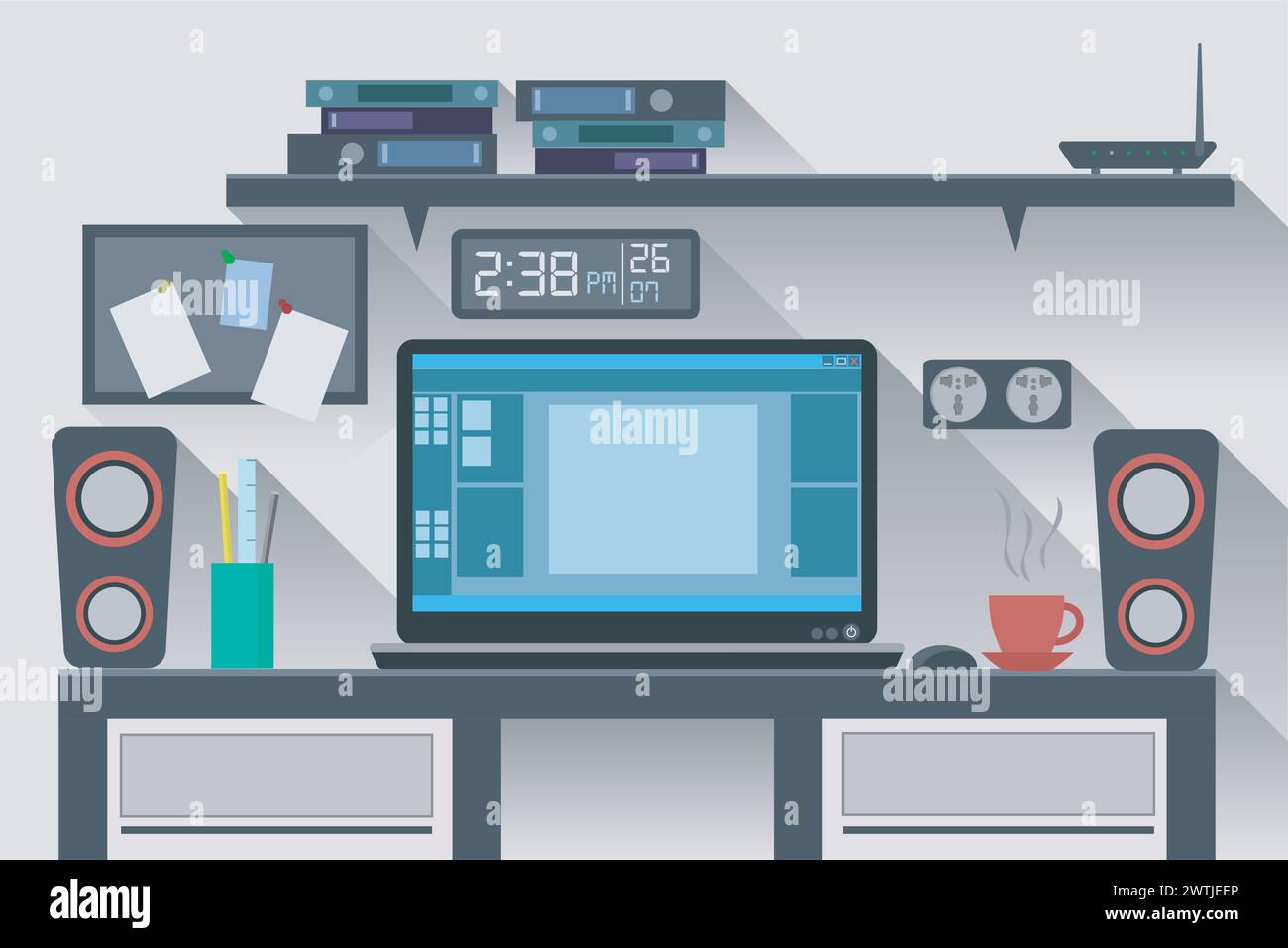 desktop computer with time clock Stock Vector Image & Art - Alamy