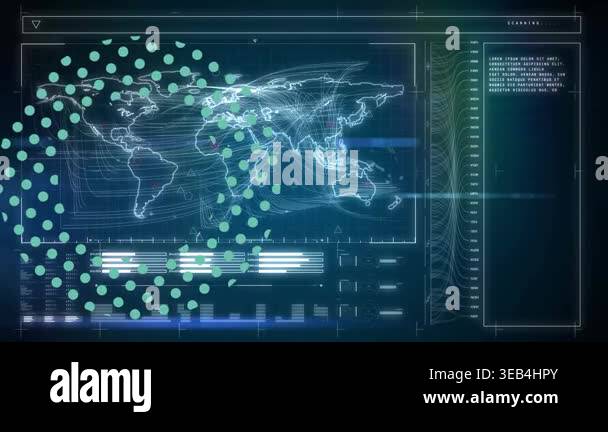 Animation of vhs glitch effect over neon ticking clock against blue ...