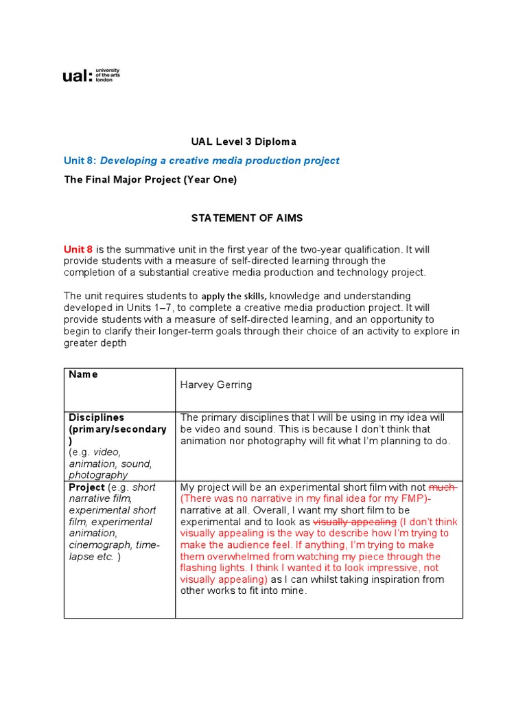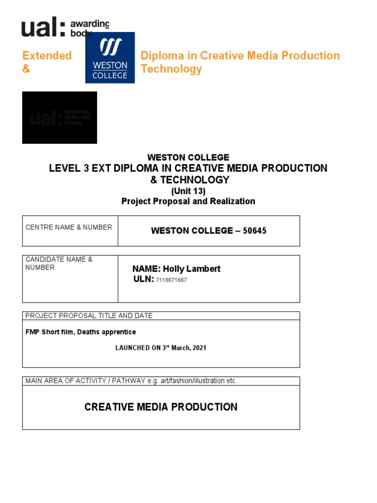 UAL Level 3 Diploma: Developing A Creative Media Production Project ...