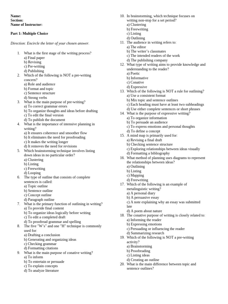Writing Process and Pre-Writing Strategies | PDF | Brainstorming ...