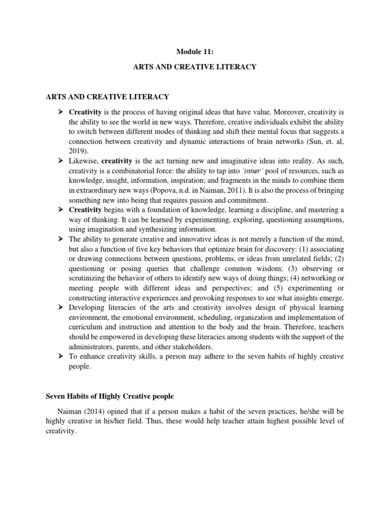 Module 11: Exploring Arts and Creative Literacy in Education - Studocu