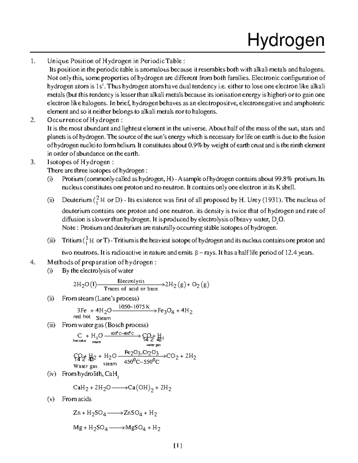 Hydrogen & Its Compounds: Unique Position in the Periodic Table - Studocu