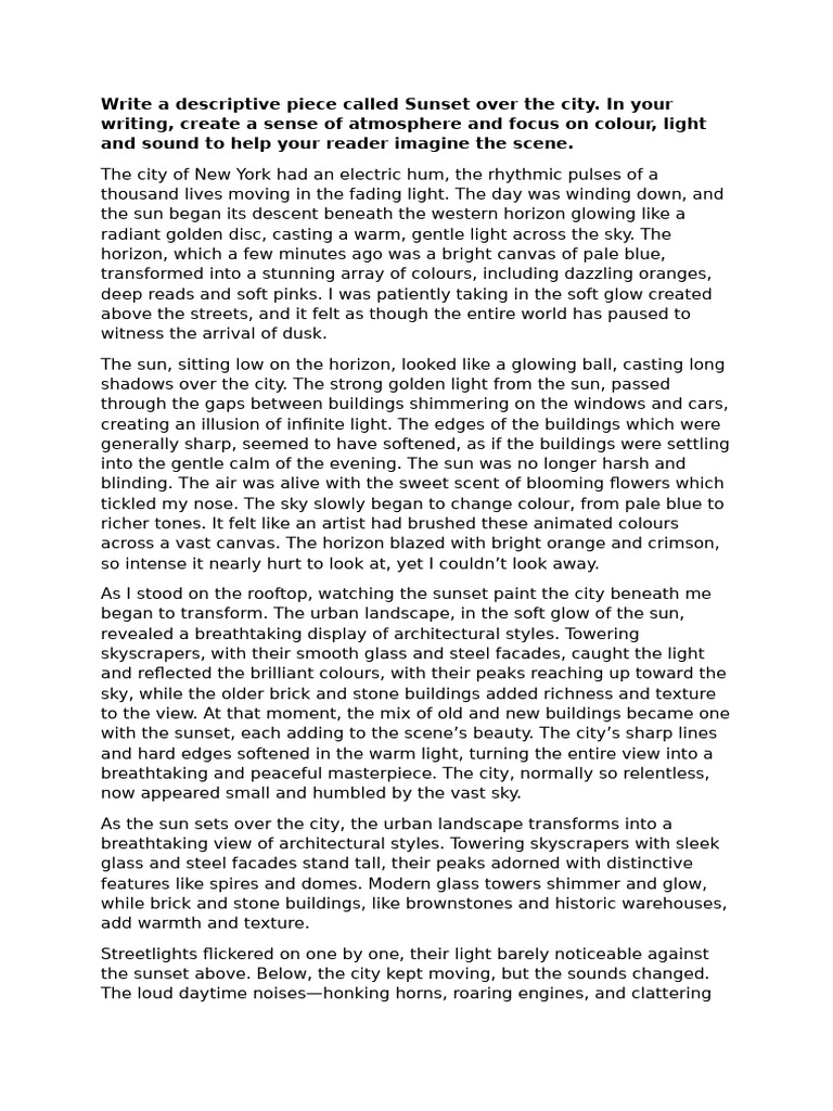 Descriptive Writing - Sunset | PDF