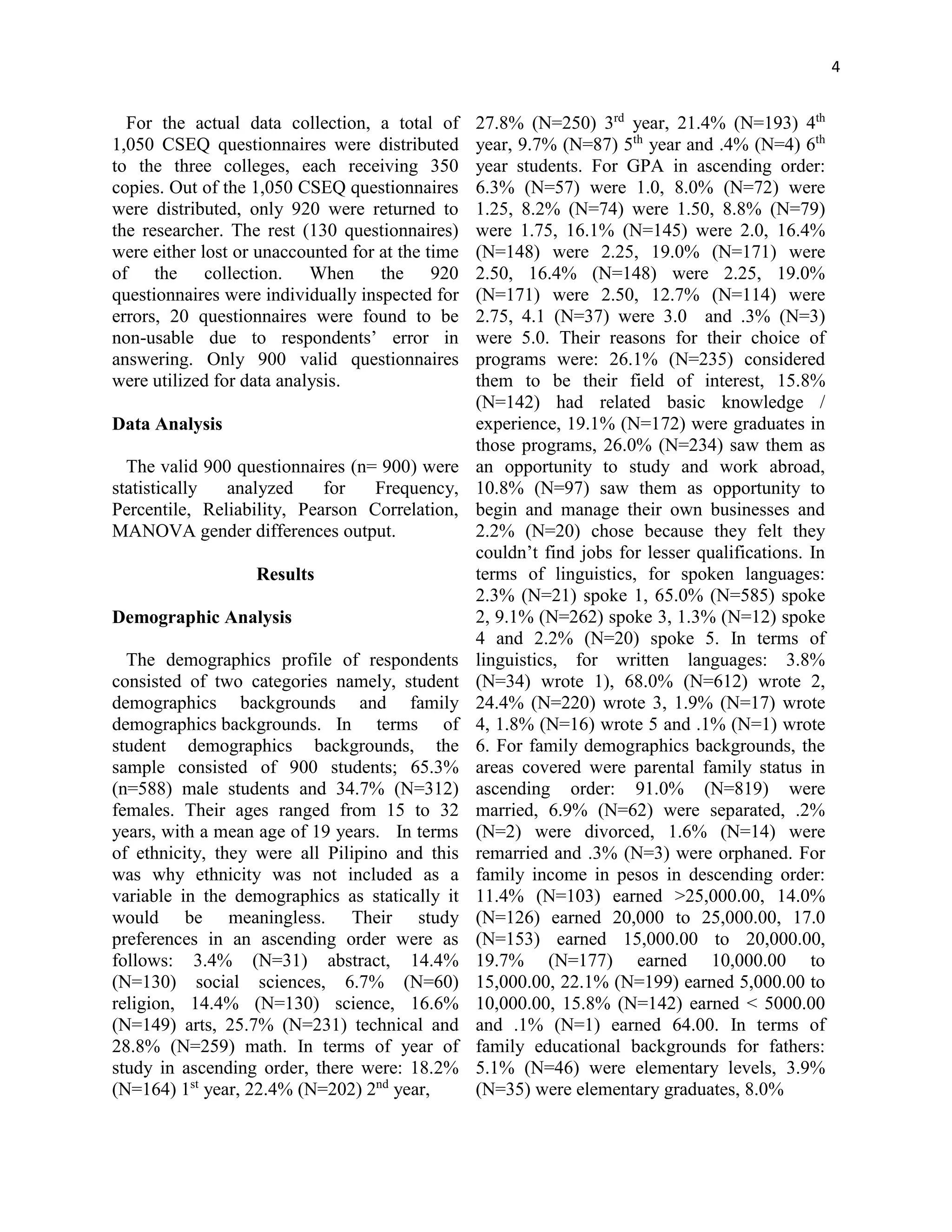 Results of Questionnaire Analysis Students' creative thinking abilities ...