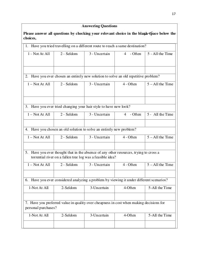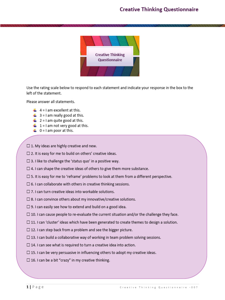 IP - Creative Thinking - Questionnaire | PDF | Psychological Concepts ...