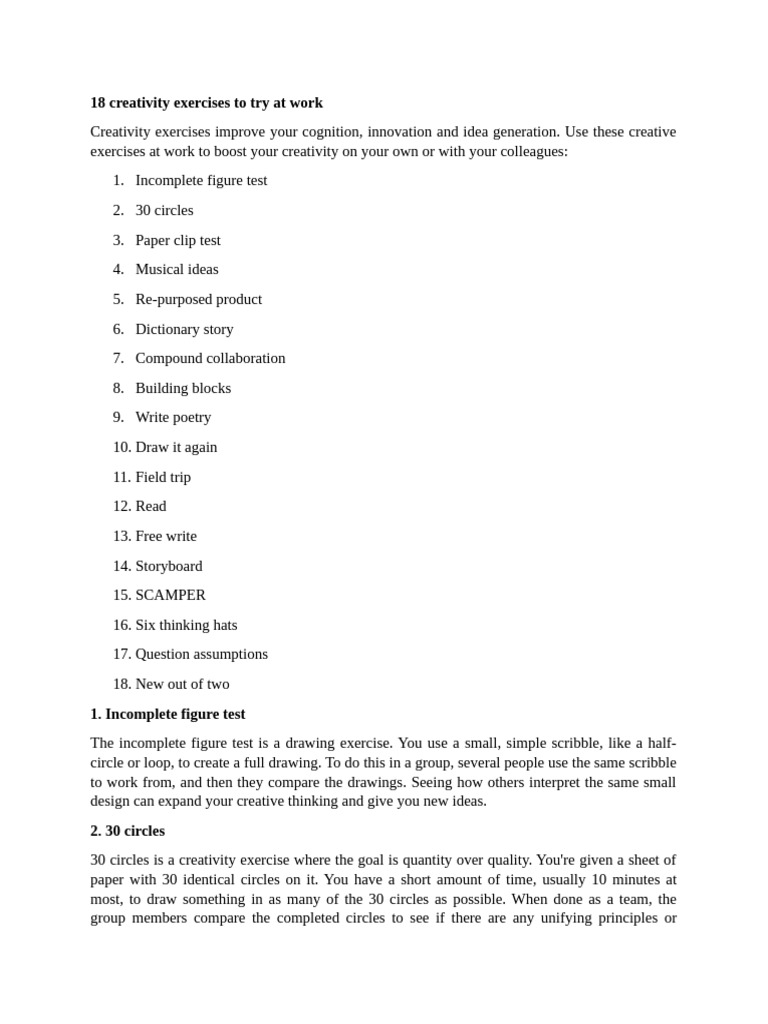 18 Creativity Exercises To Try at Work | PDF
