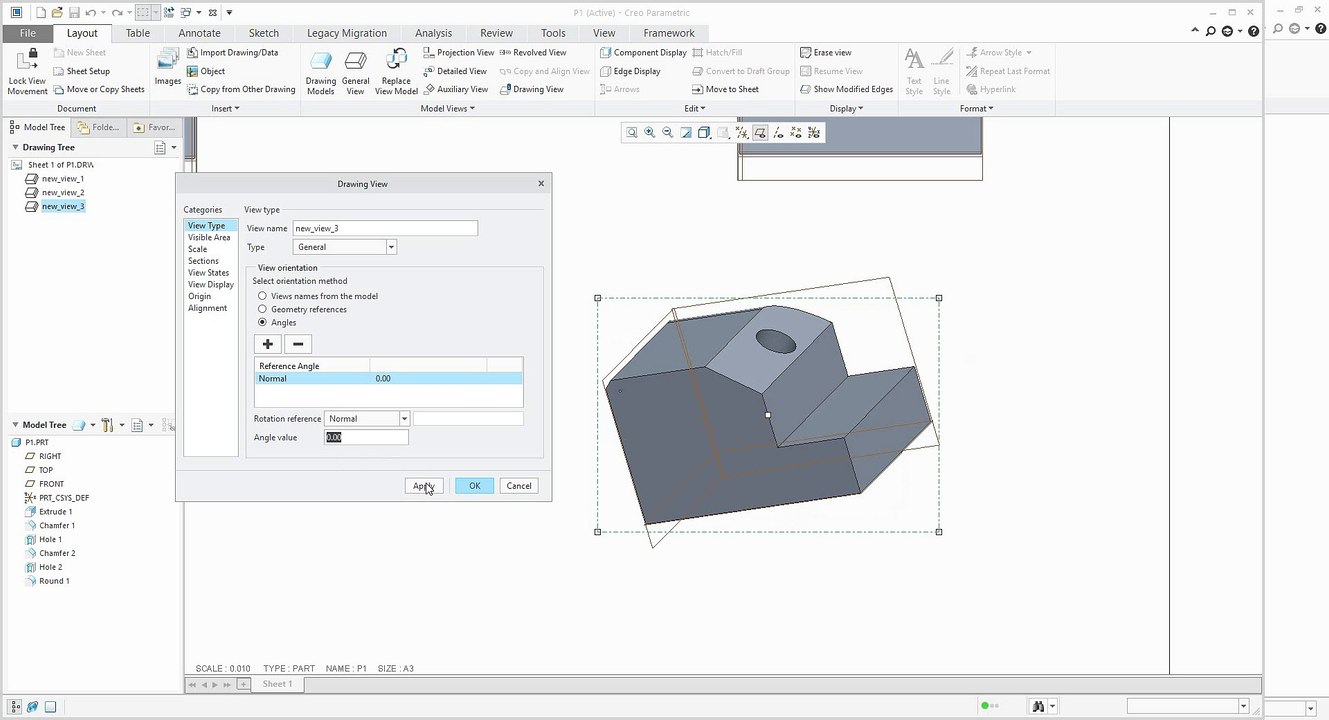 Creo Parametric Drawing Tutorial - About Creo General View, Projection ...