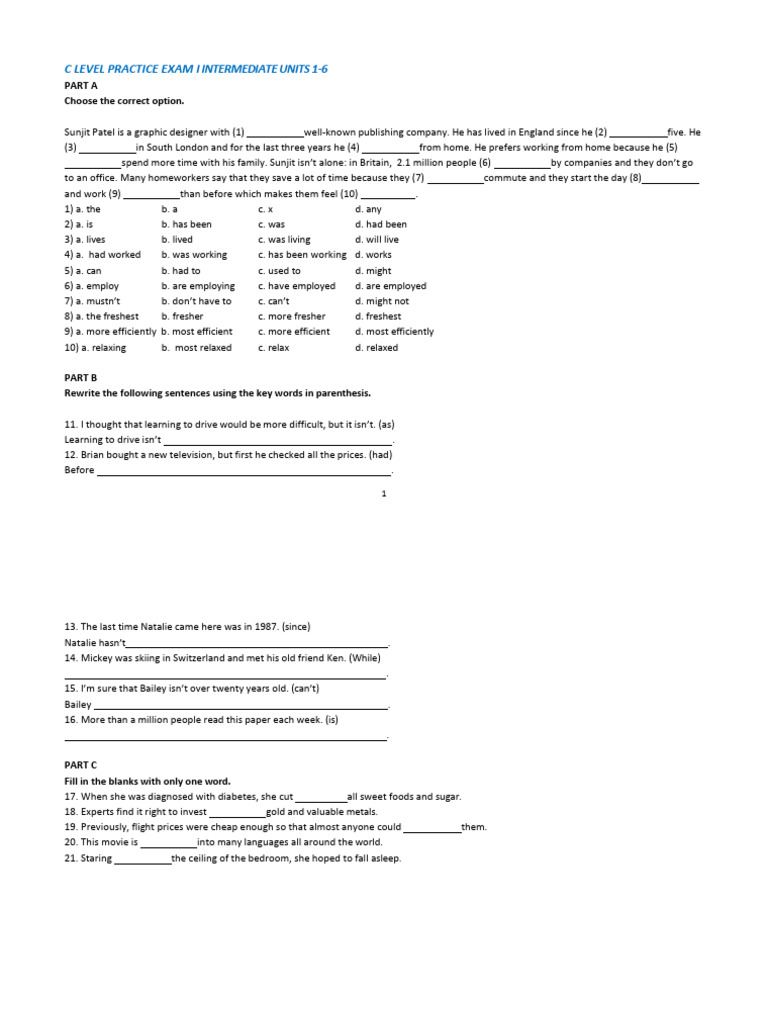 TERM I C Level Practice Exam 1 - Int 1-6 | PDF