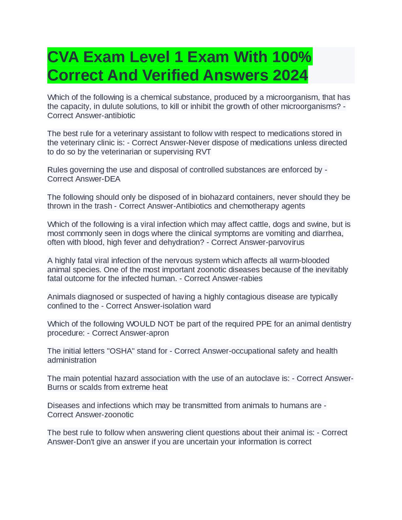 CVA LEVEL 1 PRACTICE EXAM COMPREHENSIVE DETAILED AND ACCURATE ANSWERS ...