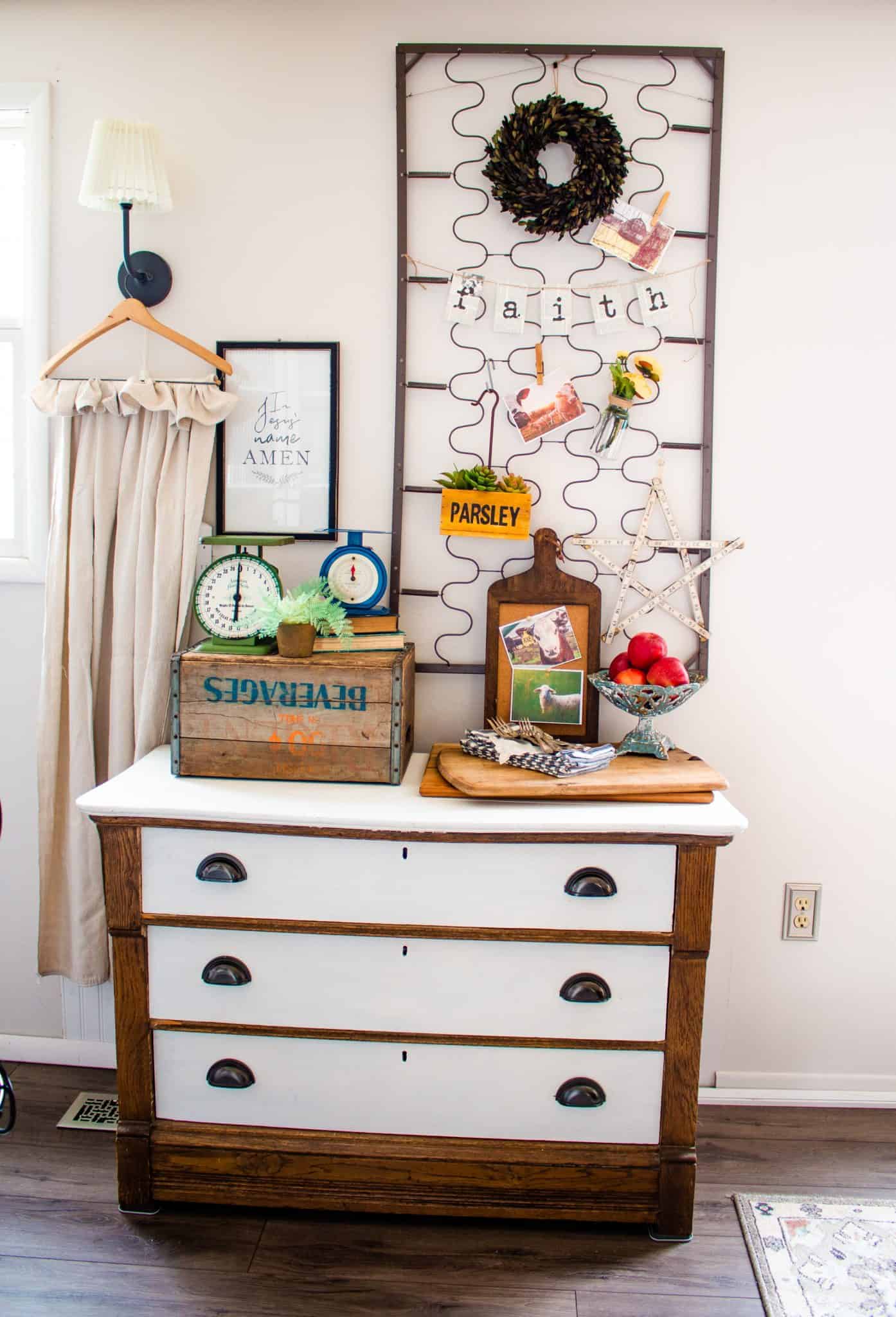 Repurposed Crib Spring with Prim Barn Treasures