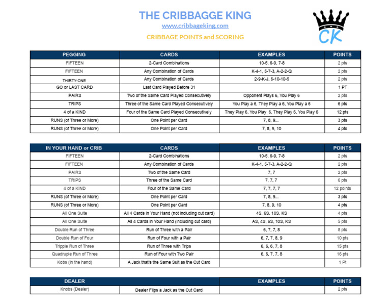 Cribbage scoring chart - pingdsae