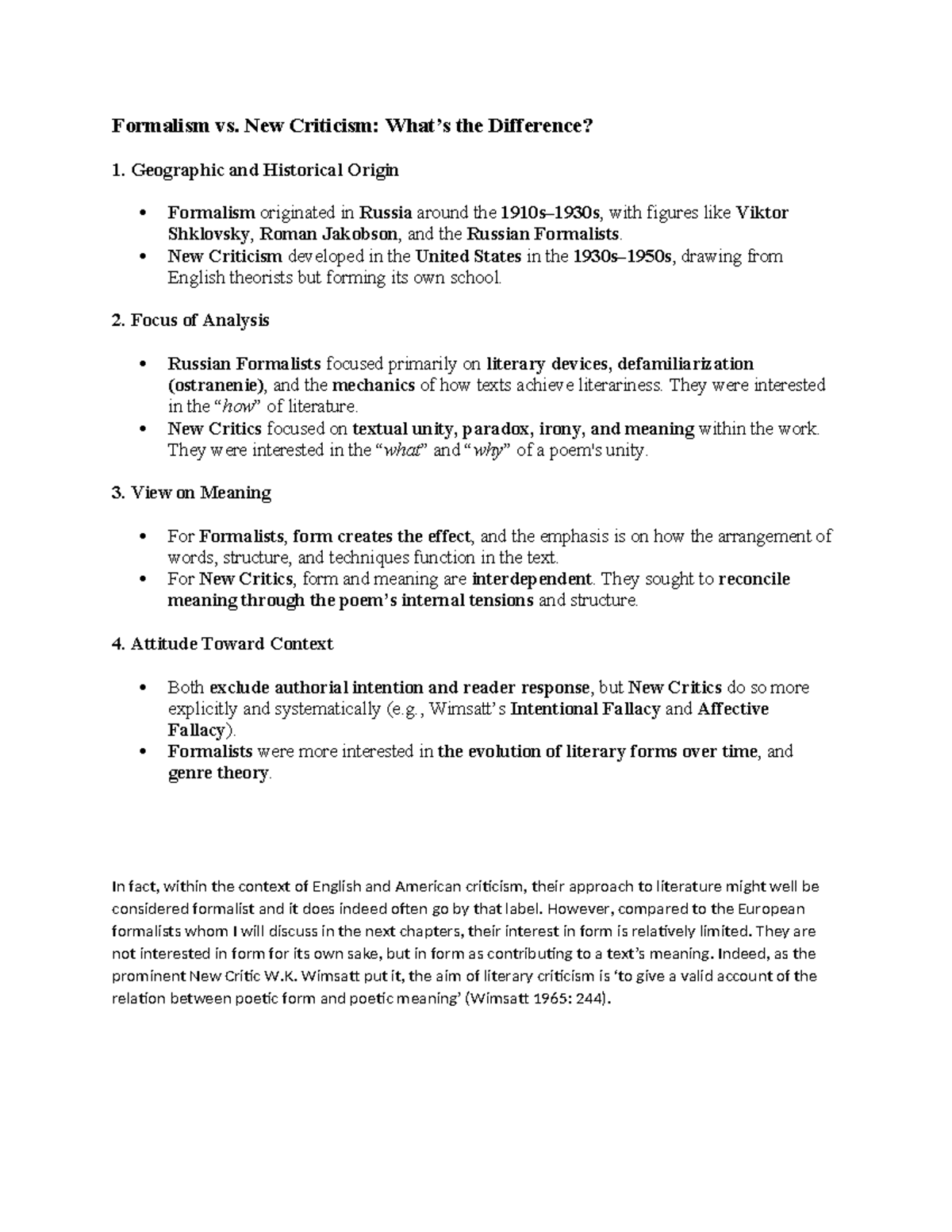 Formalism vs. New Criticism: Key Differences Explained - Studocu