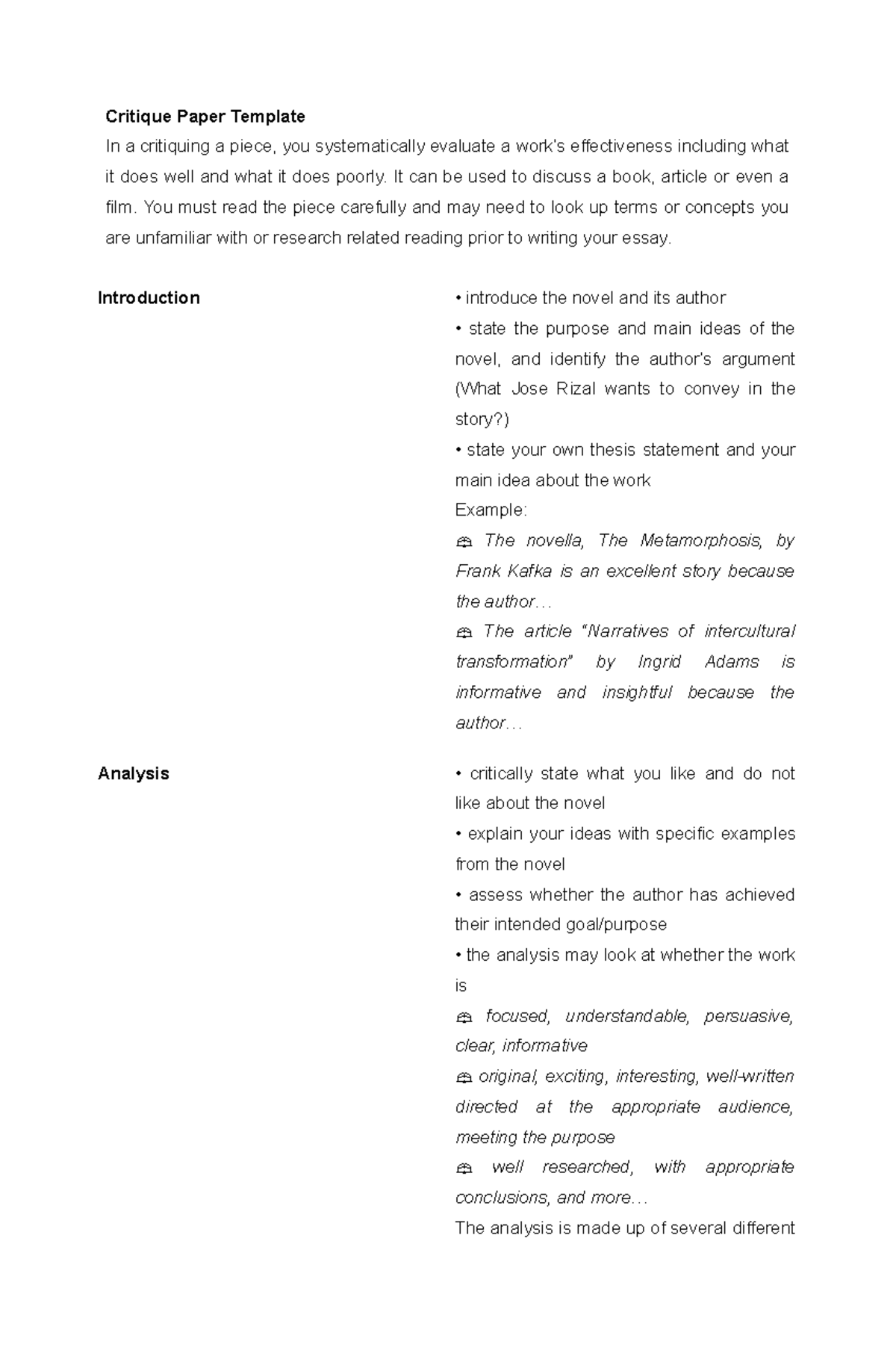Critique Paper Template - It can be used to discuss a book, article or ...