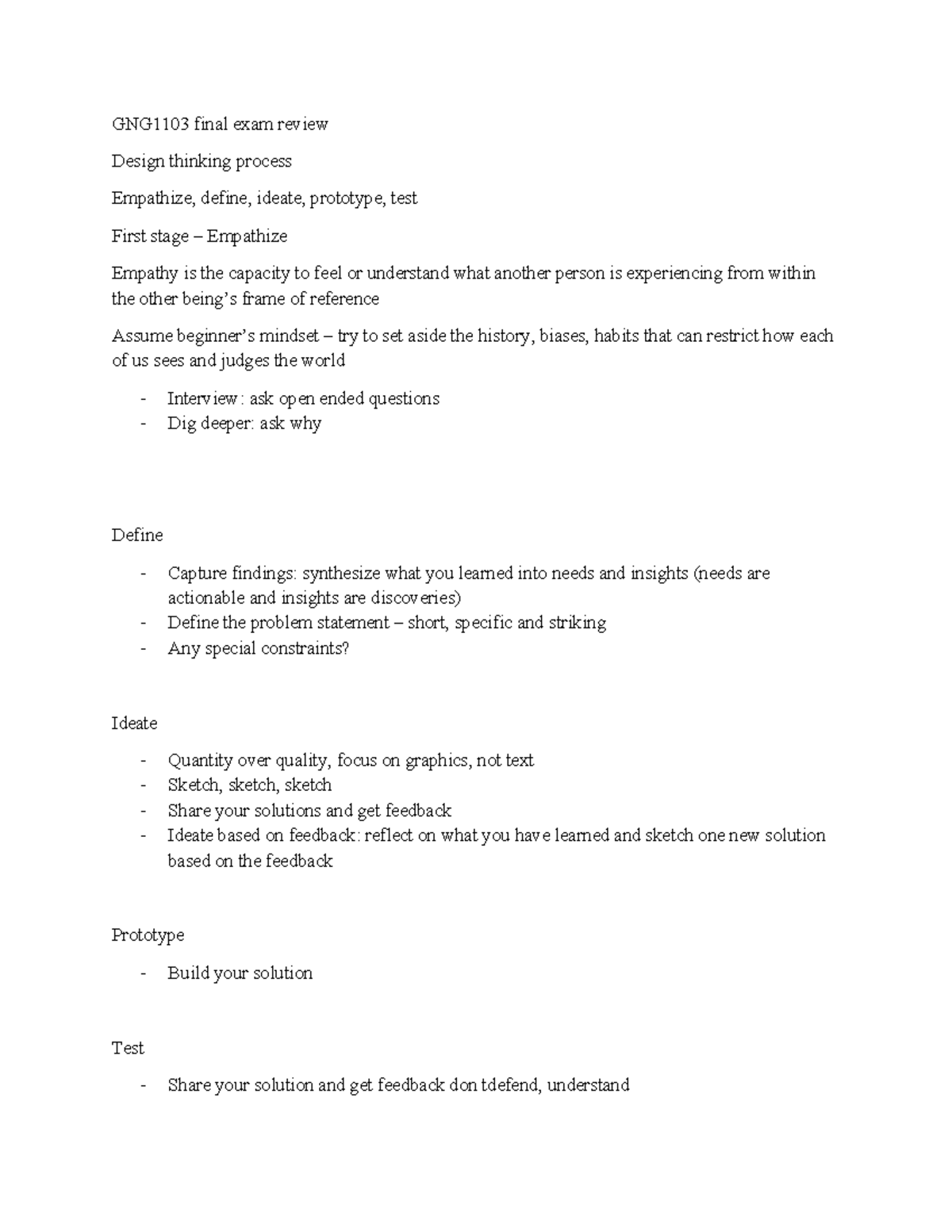 GNG1103 Final Exam Review: Design Thinking Process Overview - Studocu