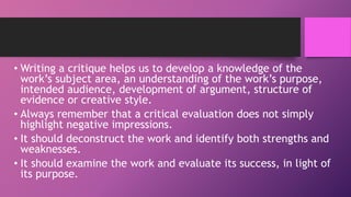 PPT - Writing a Critique: overview PowerPoint Presentation, free ...