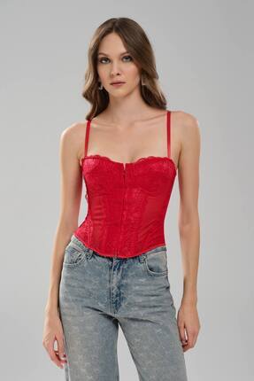 tw3 Kadın Ön Kısmı Dantel Detaylı Tasarım Crop Korse - Fiyatı, Yorumları