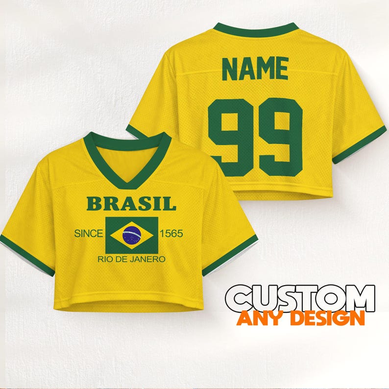 Custom Brazil Crop Top Jersey, Personalized Football Shirt, Women ...