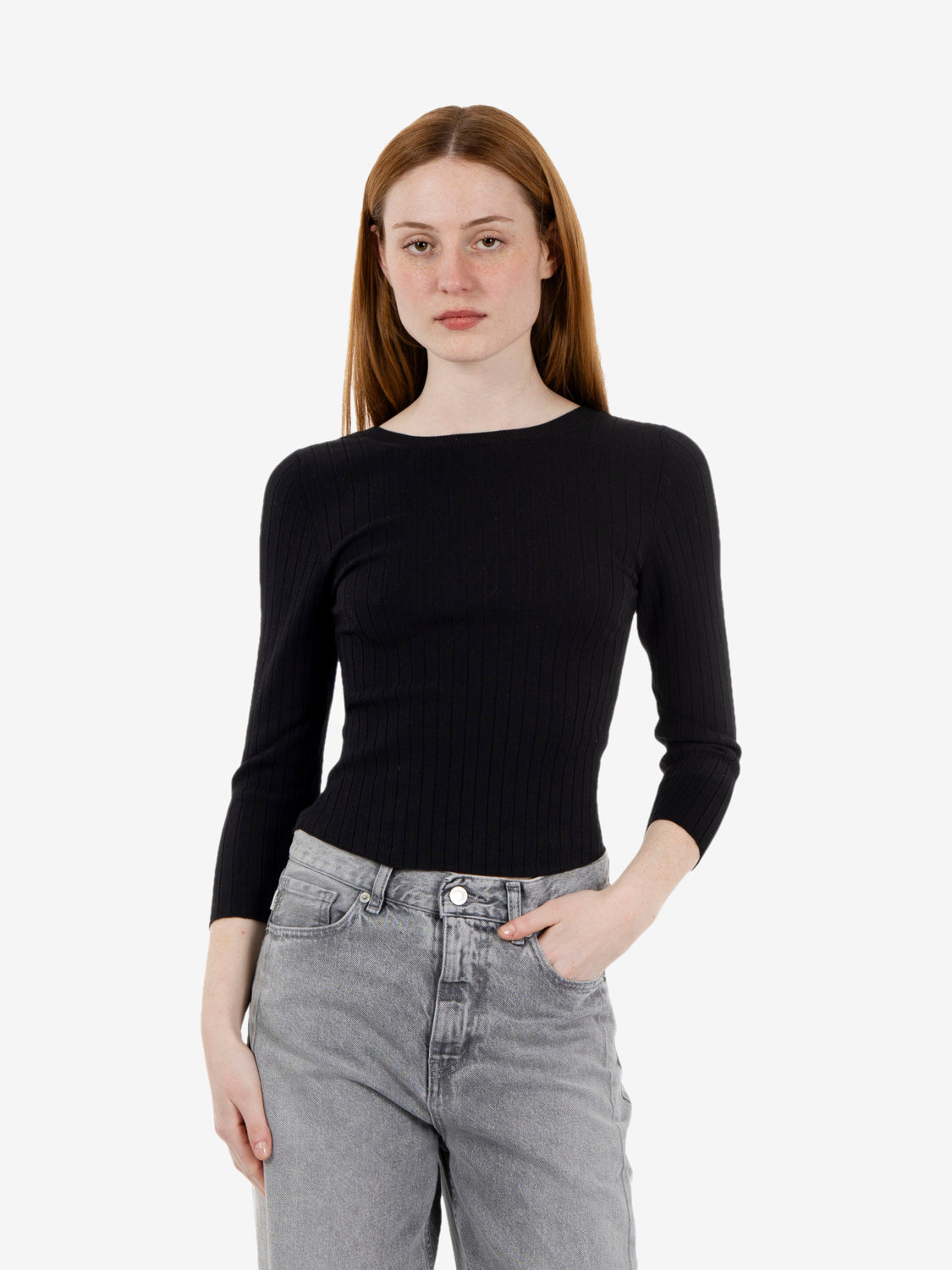 Solotre - Maglia crop in misto viscosa a coste nera | STIMM