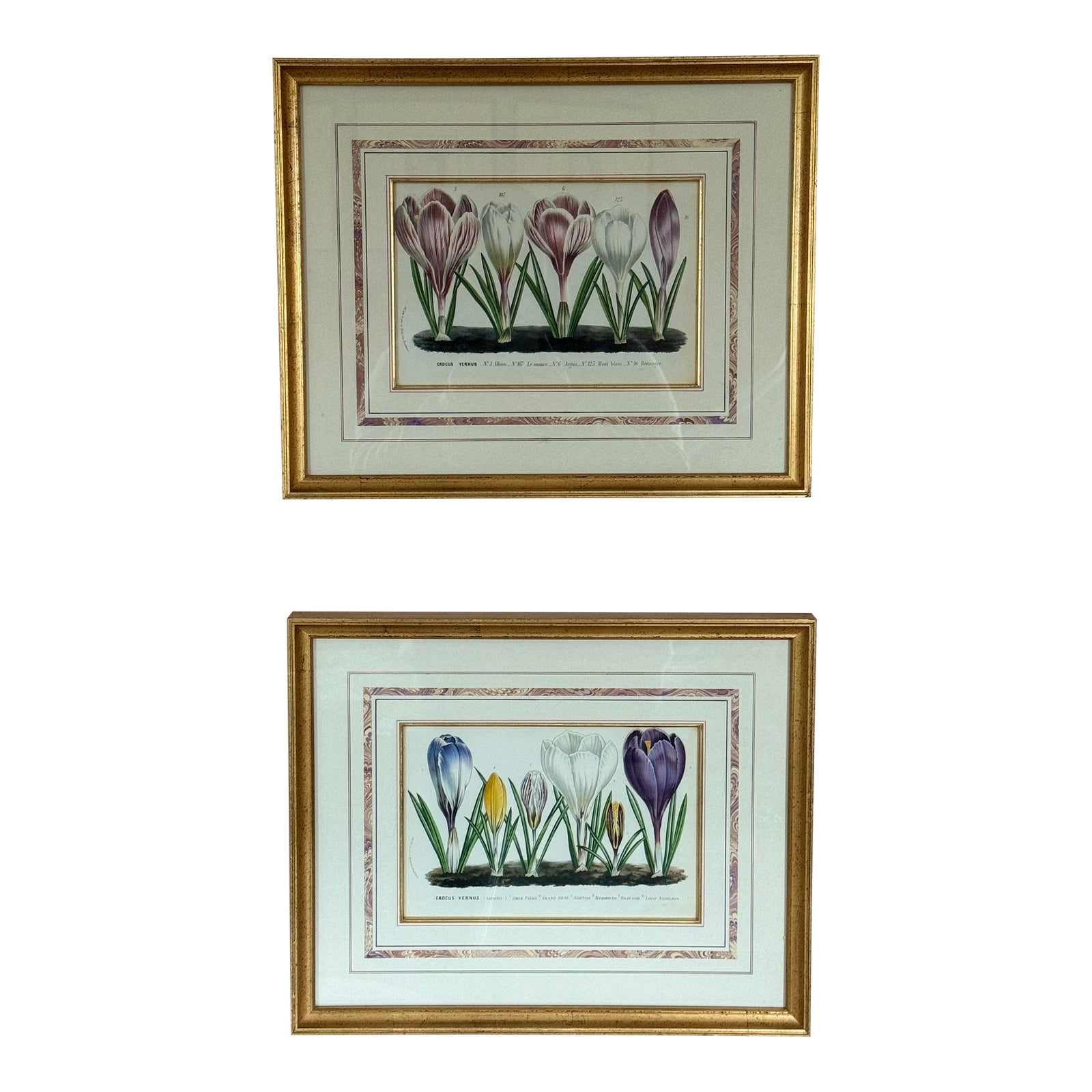 Late 20th Century Pair of Framed Reproduction Antique Crocus Botanical ...