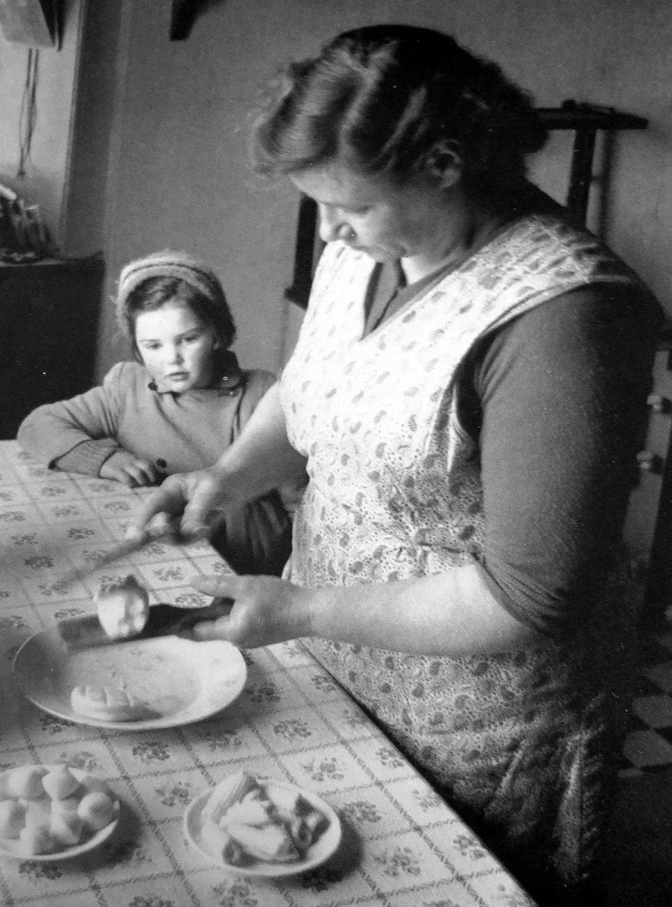 1960s, picture of a female crofter collecting peat in a bucket ...