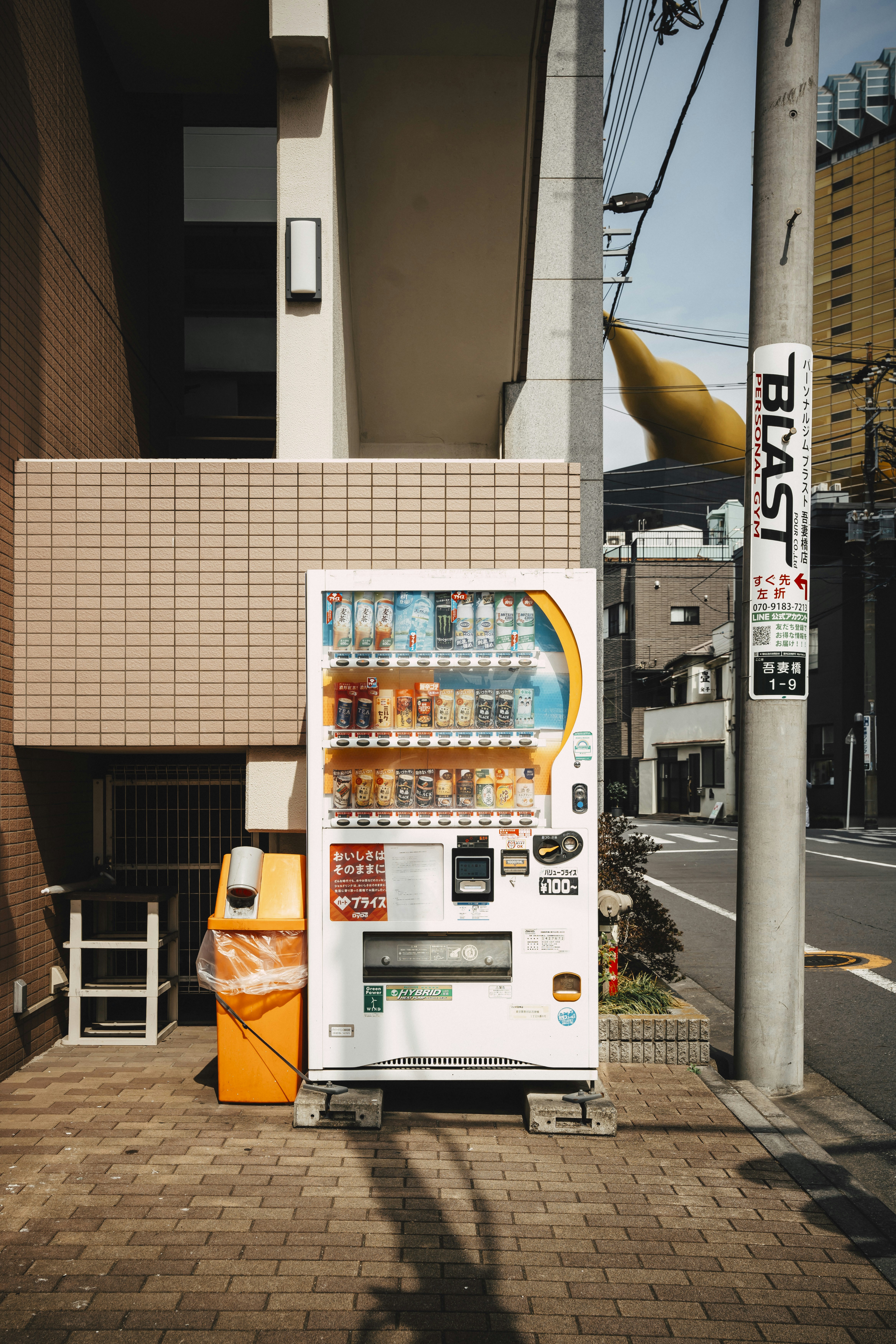 A white vending machine on a city sidewalk. photo – Free Street Image ...