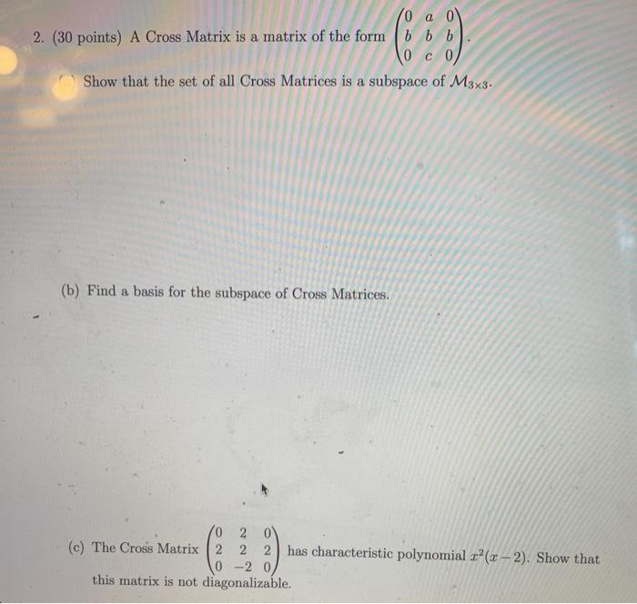 Solved 10 a ol 2. (30 points) A Cross Matrix is a matrix of | Chegg.com