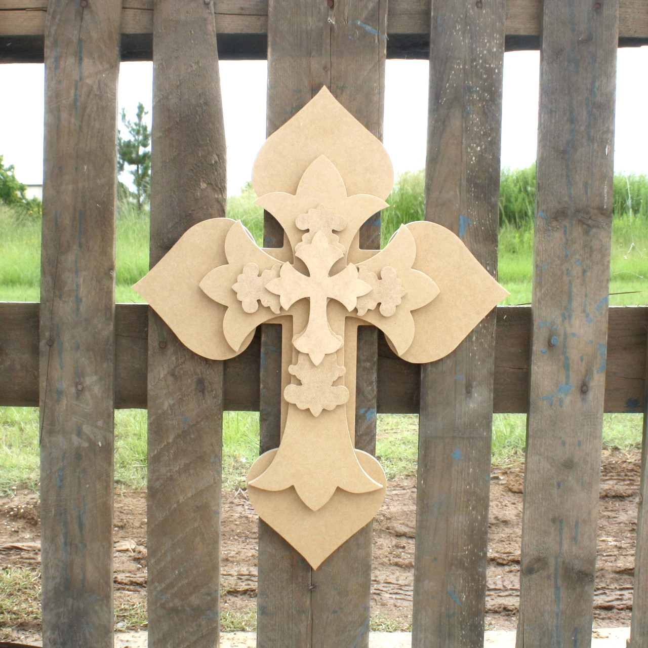 Unfinished Wood Layered Wooden Cross Stacked Paintable MDF Craft ...