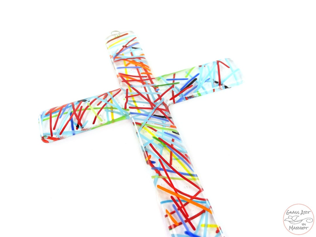 Fused Glass Wall Cross, Clear Stringer - Etsy