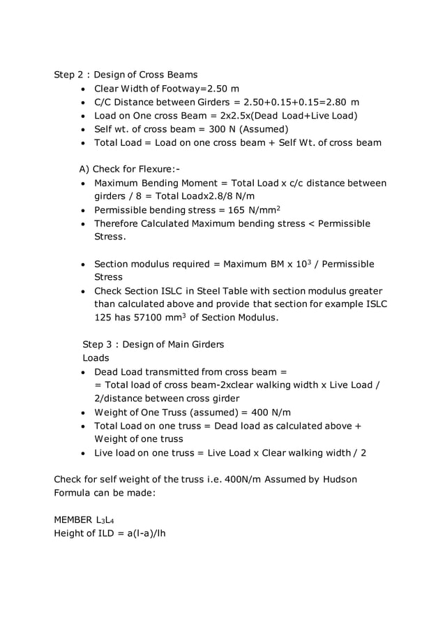 Design steps of foot bridge , stringer and cross girder | DOCX