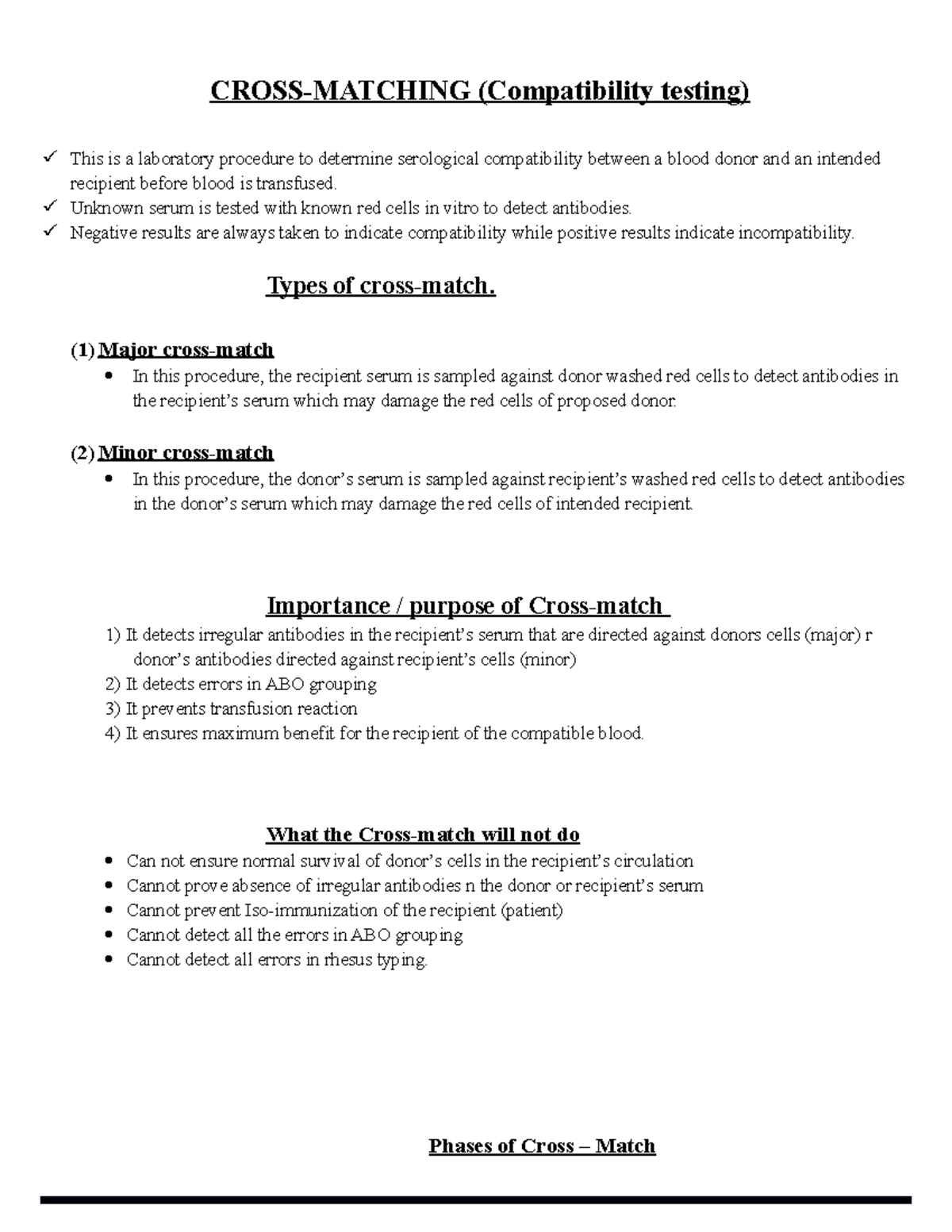 BB - Lab Finals: Crossmatching Techniques and Phases Explained - Studocu