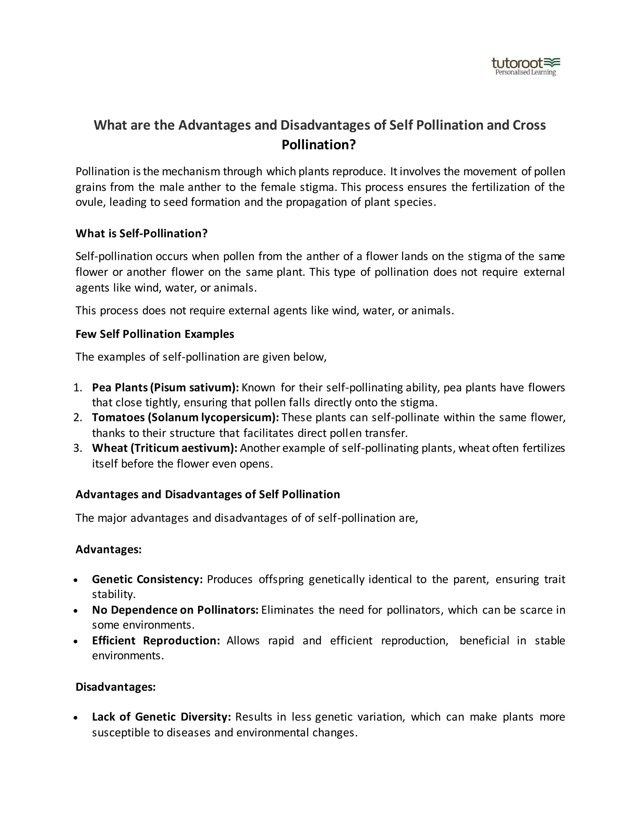 What are the Advantages and Disadvantages of Self Pollination and Cross ...
