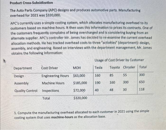 Solved Product Cross-Subsidization The Auto Parts Company | Chegg.com