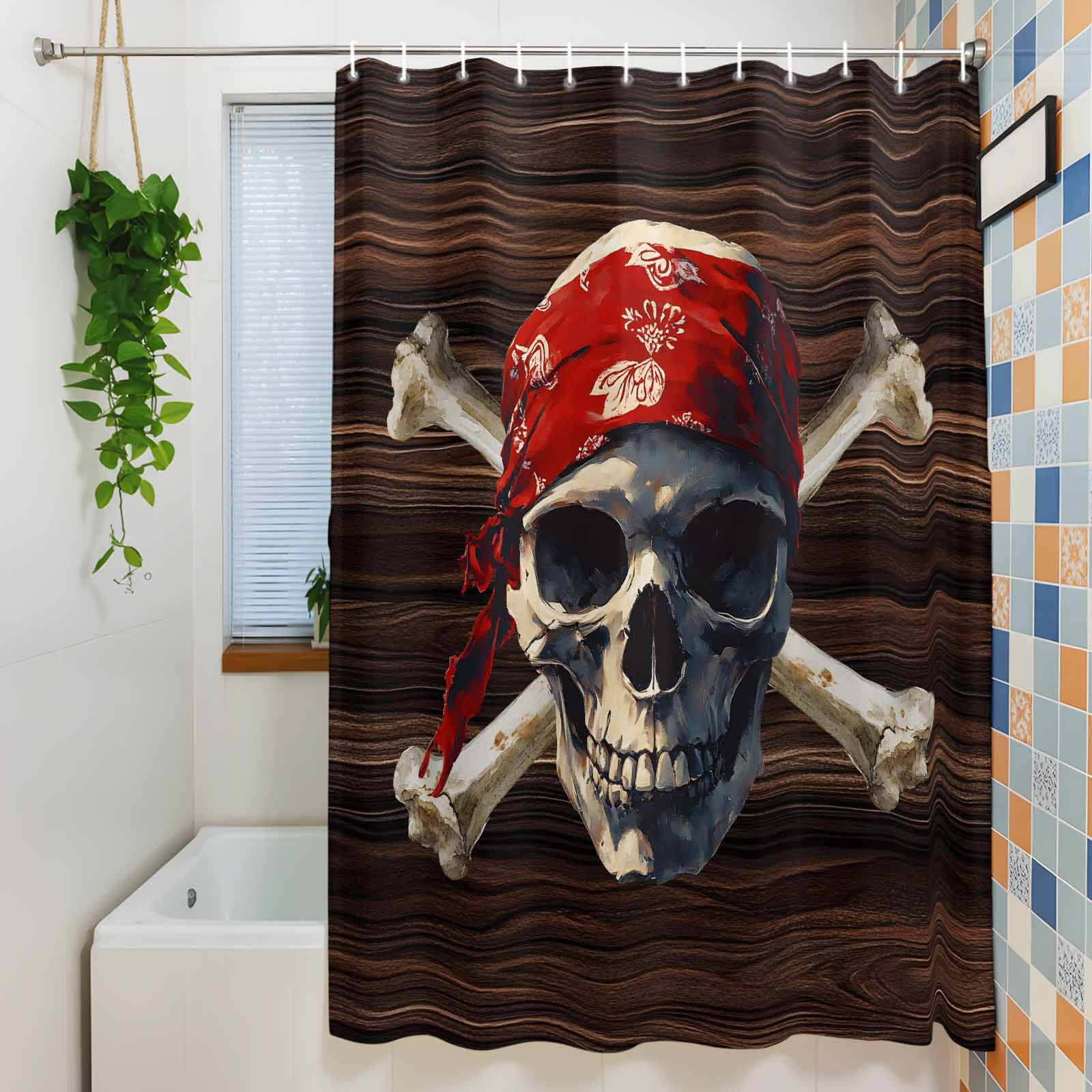 Abstract Punk Pirate Skull Shower Curtain for Bathroom, Crossbones on ...