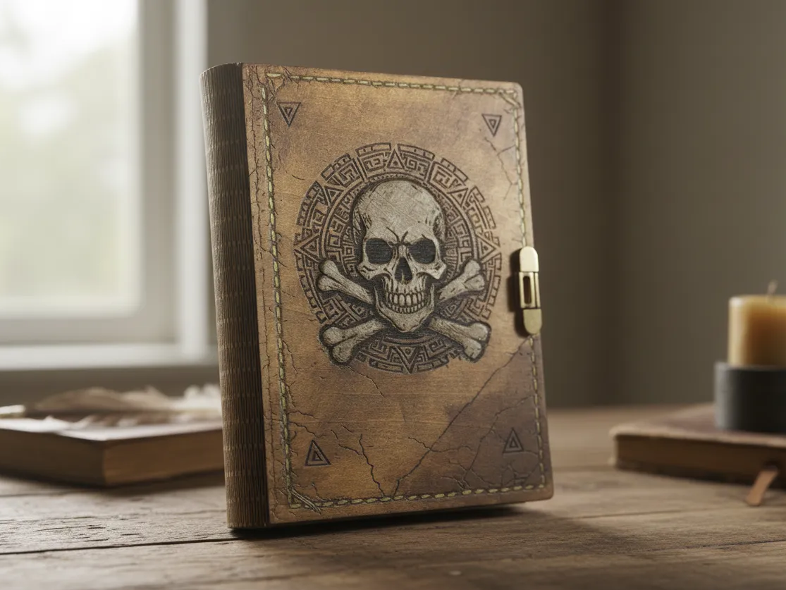 Pirate Themed Wooden Book Box with Sliding Lock and Skull and ...