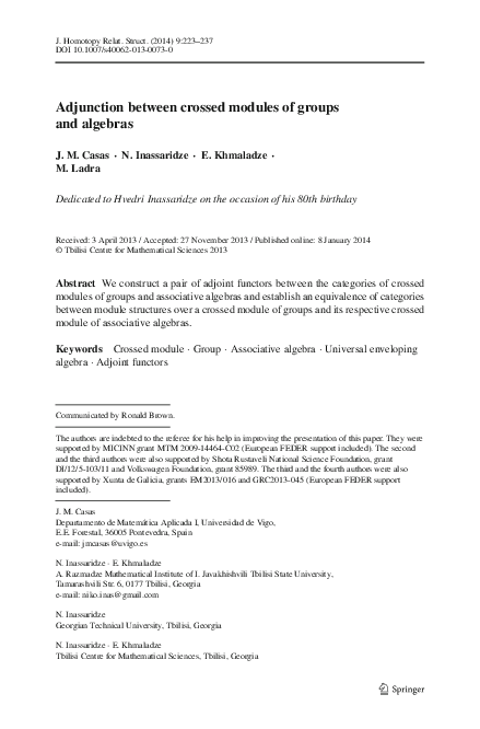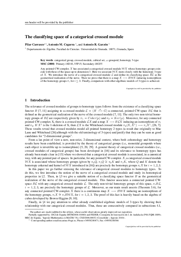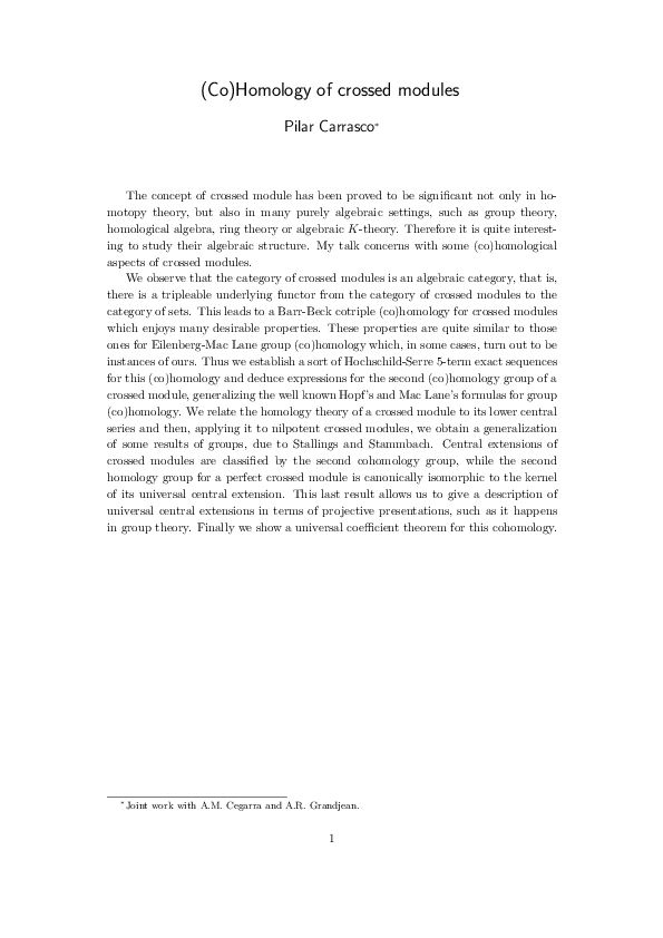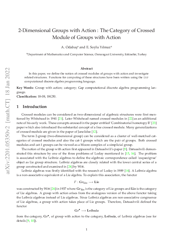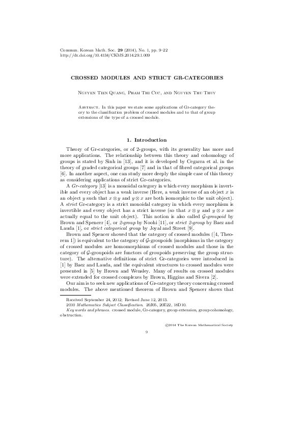 (PDF) 2-Dimensional Groups with Action : The Category of Crossed Module ...