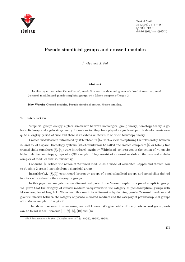 (PDF) Pseudo simplicial groups and crossed modules | sedat pak ...
