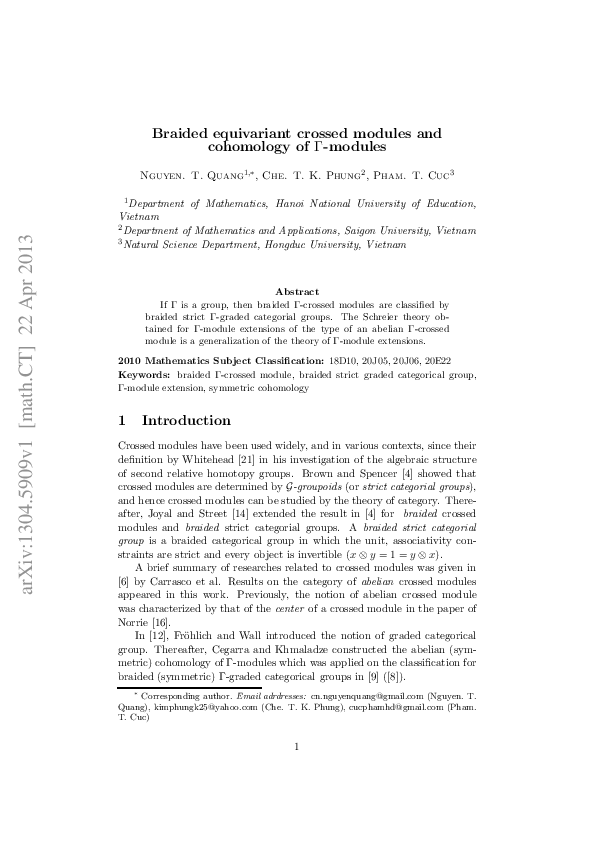 (PDF) Braided Γ-Crossed Modules and Cohomology