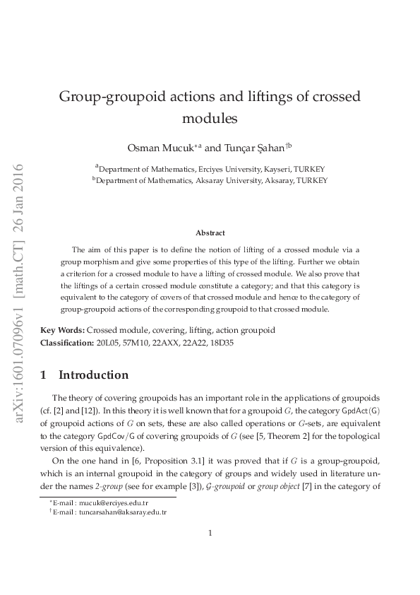 (PDF) Liftings and covering morphisms of crossed modules in group ...
