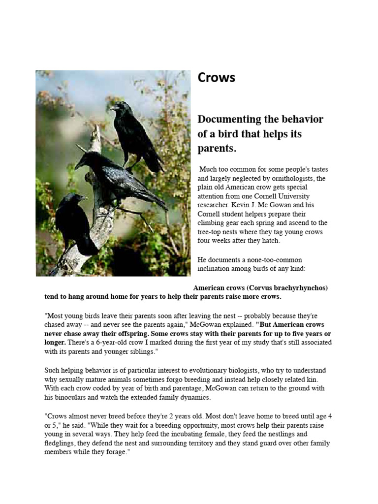 Behavior Crows | PDF | Birds | Holarctic Birds