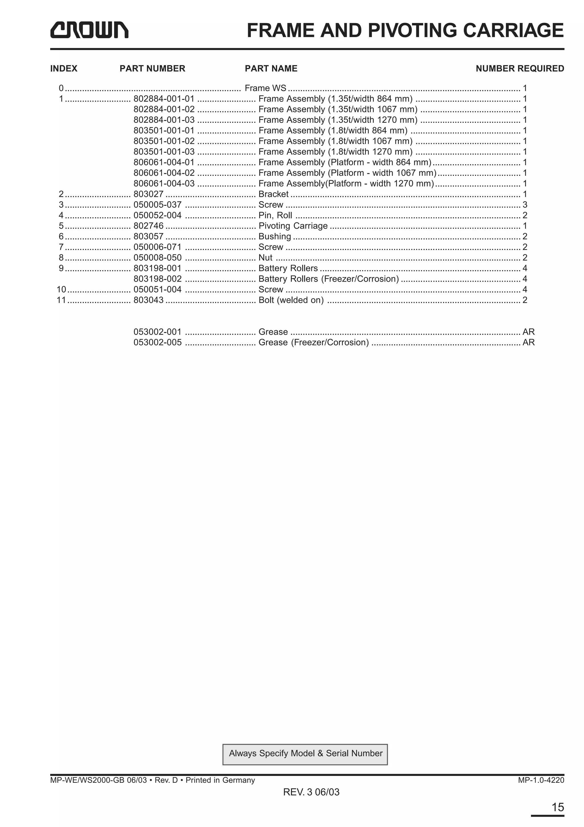 Crown Forklift WE/WS2000 Series Parts Manual 812687-006 - HeyDownloads ...