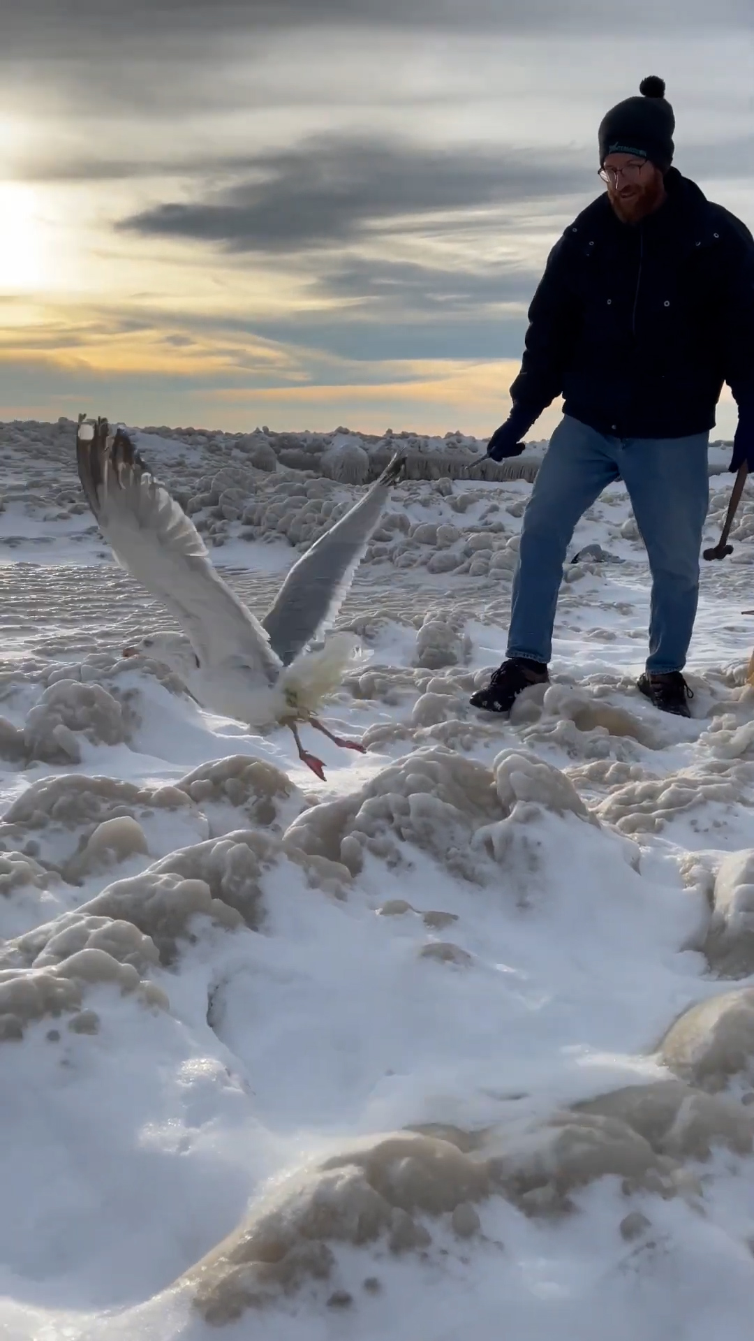 Buffalo couple frees birds trapped in ice using household tools